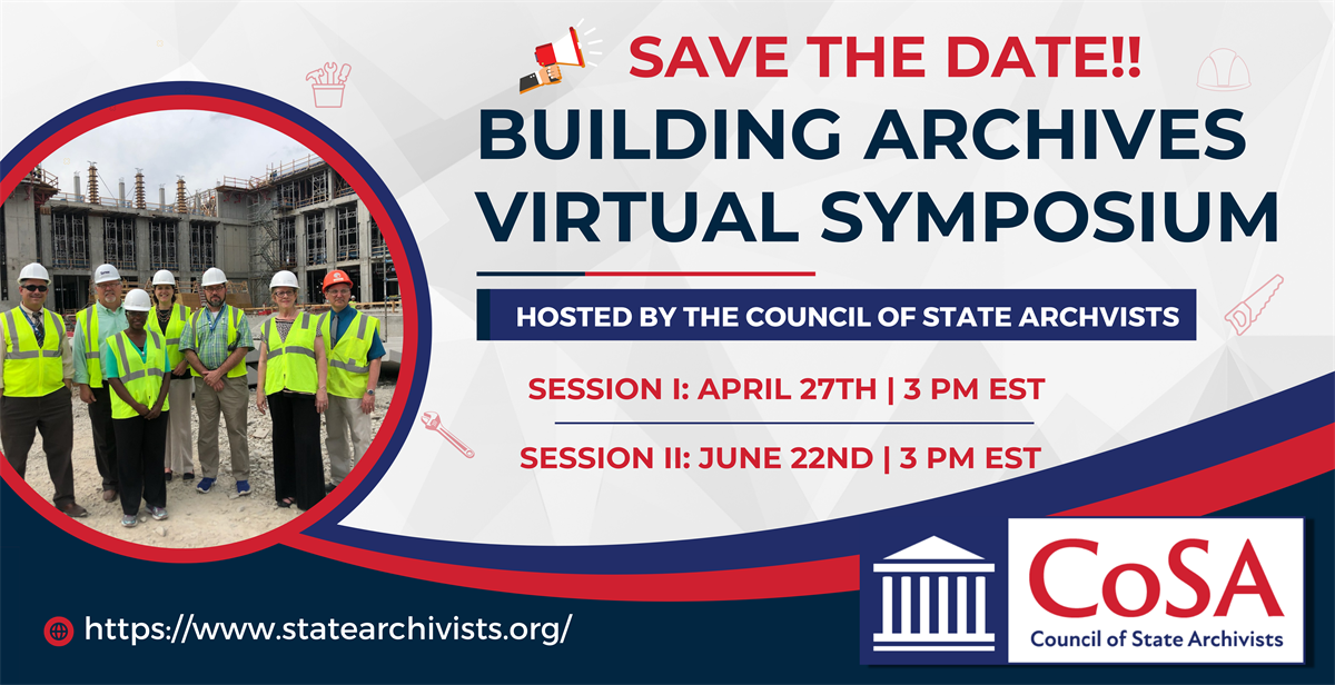The Council of State Archivists (CoSA) is presenting a two-part virtual symposium on the planning and implementation of facilities construction and renovation projects on April 27th and June 22nd, 3 – 4:30 pm Eastern.