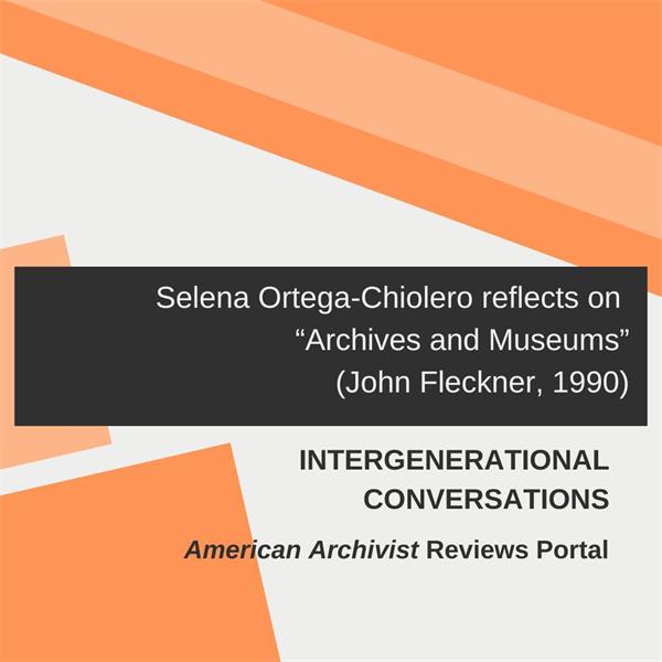 In the latest entry in the Intergenerational Conversations series, Selena Ortega-Chiolero (Chickaloon Village Traditional Council) reviews John Fleckner's article "Archives and Museums" from The Midwestern Archivist 15, no 2. She reads the article from a community-centric, Indigenous perspective, parsing changes in the profession since the article was first published and looking for places where Fleckner's analysis could be expanded. Ortega-Chiolero writes, "...I see many parallels between Fleckner's recommendations and practices often applied in what we now consider to be community-centric collections where decisions are driven by community voices, for community voices." Read the full review and check out the other great pieces on the Reviews Portal.