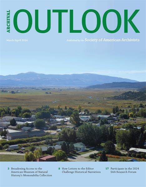 Discover the latest issue of Archival Outlook! In the March/April 2024 issue, Michele Jennings offers insights on creating exhibit audio guides; Abbie Steuhm considers the value of letters to the editor for expanding historical perspectives; and Jay Trask, Patricia J. Rettig, and Tom Sommer share three efforts to preserve land and water history in Colorado. Also in this issue, read about the work of archivists preserving video games and all their associated assets, and consider submitting a proposal to participate in SAA’s 2024 Research Forum. Read the digital version here. Print edition to follow.