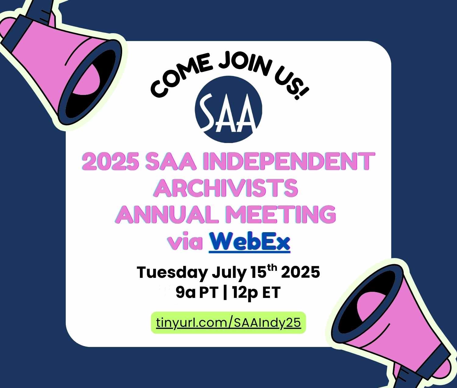 Please register and mark your calendars for the SAA-Independent Archivists Section 2025 Annual Meeting on Tuesday, July 15th from 11:00 AM to 12:30 PM (CT)